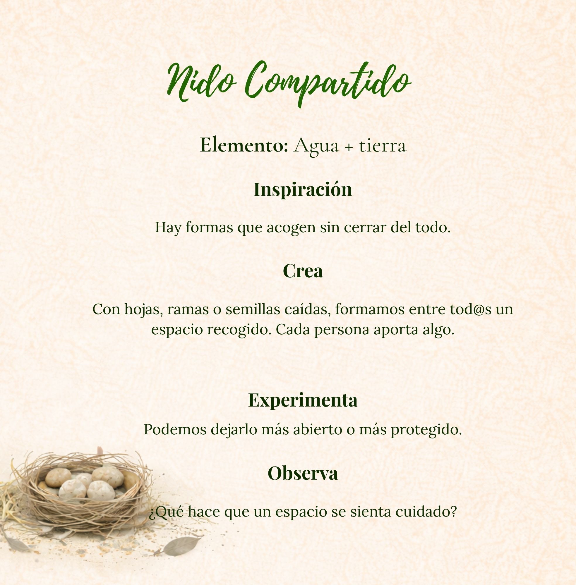 Es un recurso pensado para familias, docentes y espacios educativos sensibles que quieren ofrecer a la infancia experiencias de naturaleza, arte y presencia de una forma más humana, más sencilla y más viva.